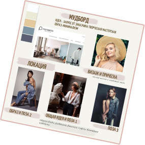 образа фотосъемки(мудборда), общей стоимости фотосессии.